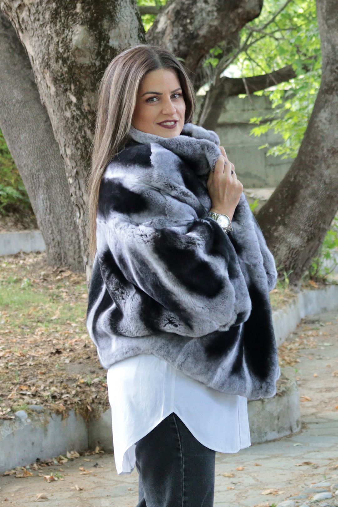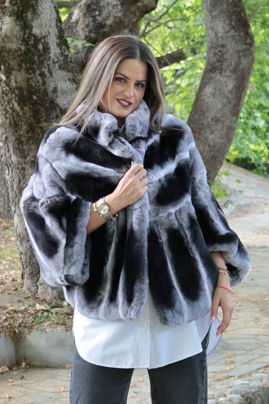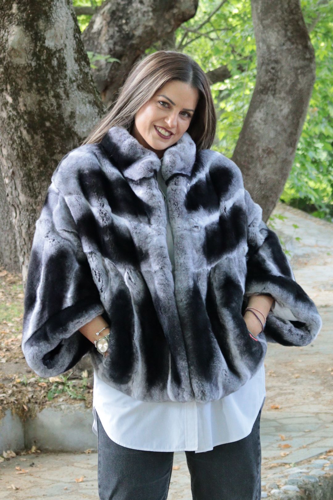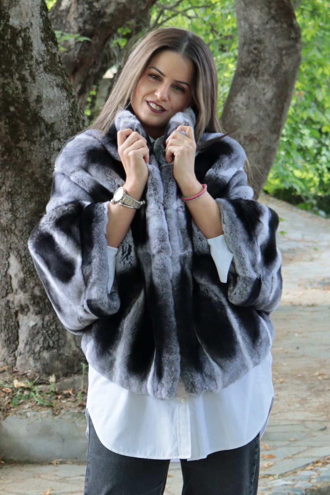 Combine the unique luxury and warmth with the characteristic soft texture of rex fur. It has two hand pockets, closes with a fur clip and inside is lined with excellent quality lining. Ideal for formal events or special moments. It adds feminine charm to your every look.